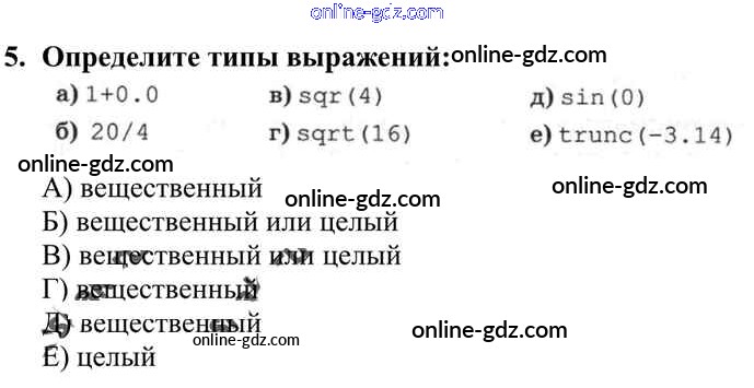Готовые домашние задания по Информатике за 10 класс Учебник Семакин, Хеннер Базовый уровень 2017 - §16. Операции, функции, выражения 5