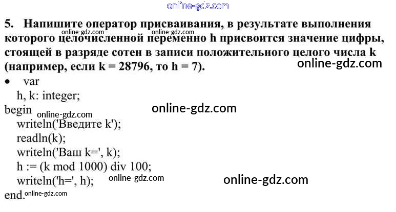 Готовые домашние задания по Информатике за 10 класс Учебник Семакин, Хеннер Базовый уровень 2017 - §17. Оператор присваивания, ввод и вывод данных 5