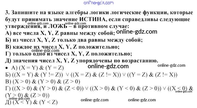Готовые домашние задания по Информатике за 10 класс Учебник Семакин, Хеннер Базовый уровень 2017 - §18. Логические величины, операции, выражения 3