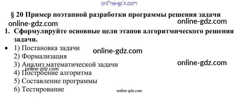 Готовые домашние задания по Информатике за 10 класс Учебник Семакин, Хеннер Базовый уровень 2017 - §20. Пример поэтапной разработки программы решения задачи 1