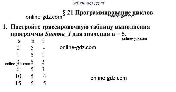 Готовые домашние задания по Информатике за 10 класс Учебник Семакин, Хеннер Базовый уровень 2017 - §21. Программирование циклов 1