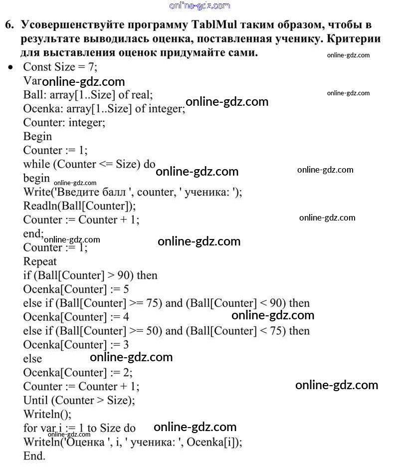 Готовые домашние задания по Информатике за 10 класс Учебник Семакин, Хеннер Базовый уровень 2017 - §21. Программирование циклов 6