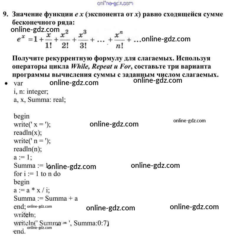 Готовые домашние задания по Информатике за 10 класс Учебник Семакин, Хеннер Базовый уровень 2017 - §21. Программирование циклов 9