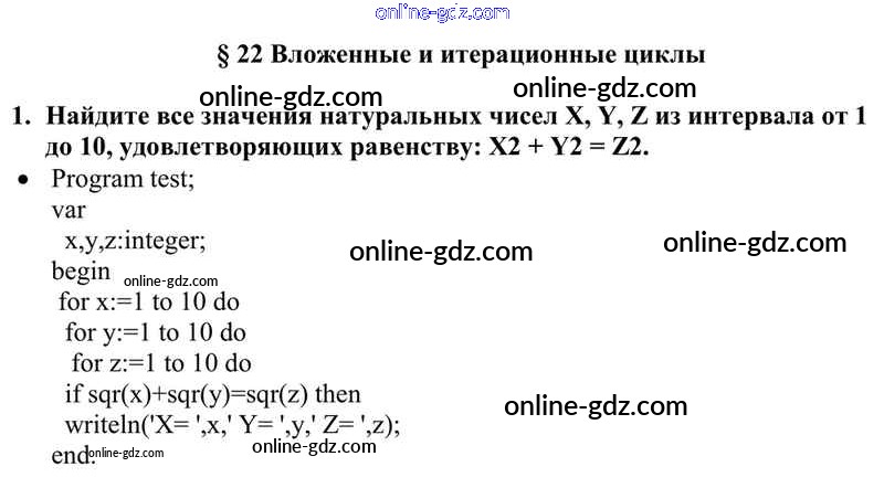 Готовые домашние задания по Информатике за 10 класс Учебник Семакин, Хеннер Базовый уровень 2017 - §22. Вложенные и итерационные циклы 1