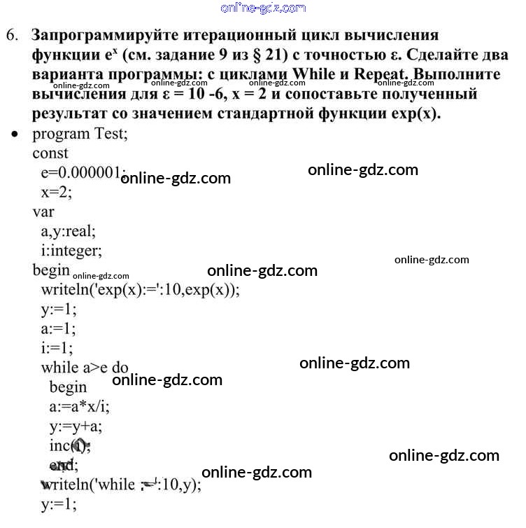 Готовые домашние задания по Информатике за 10 класс Учебник Семакин, Хеннер Базовый уровень 2017 - §22. Вложенные и итерационные циклы 6