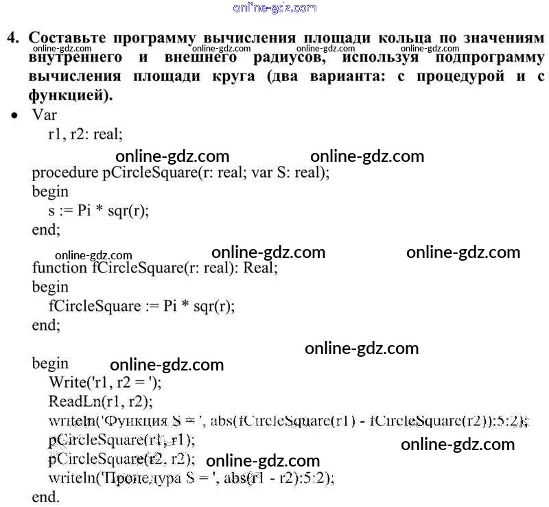 Готовые домашние задания по Информатике за 10 класс Учебник Семакин, Хеннер Базовый уровень 2017 - §23. Вспомогательные алгоритмы и подпрограммы 4