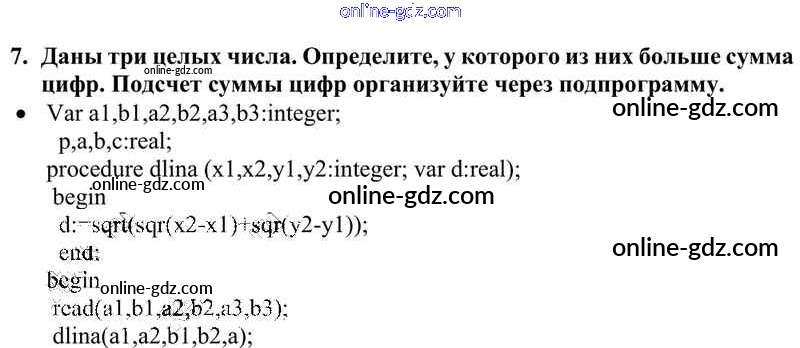 Готовые домашние задания по Информатике за 10 класс Учебник Семакин, Хеннер Базовый уровень 2017 - §23. Вспомогательные алгоритмы и подпрограммы 7
