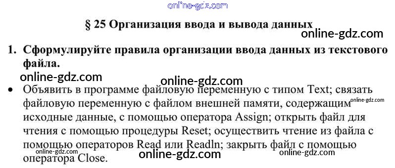 Готовые домашние задания по Информатике за 10 класс Учебник Семакин, Хеннер Базовый уровень 2017 - §25. Организация ввода и вывода данных с использованием файлов 1