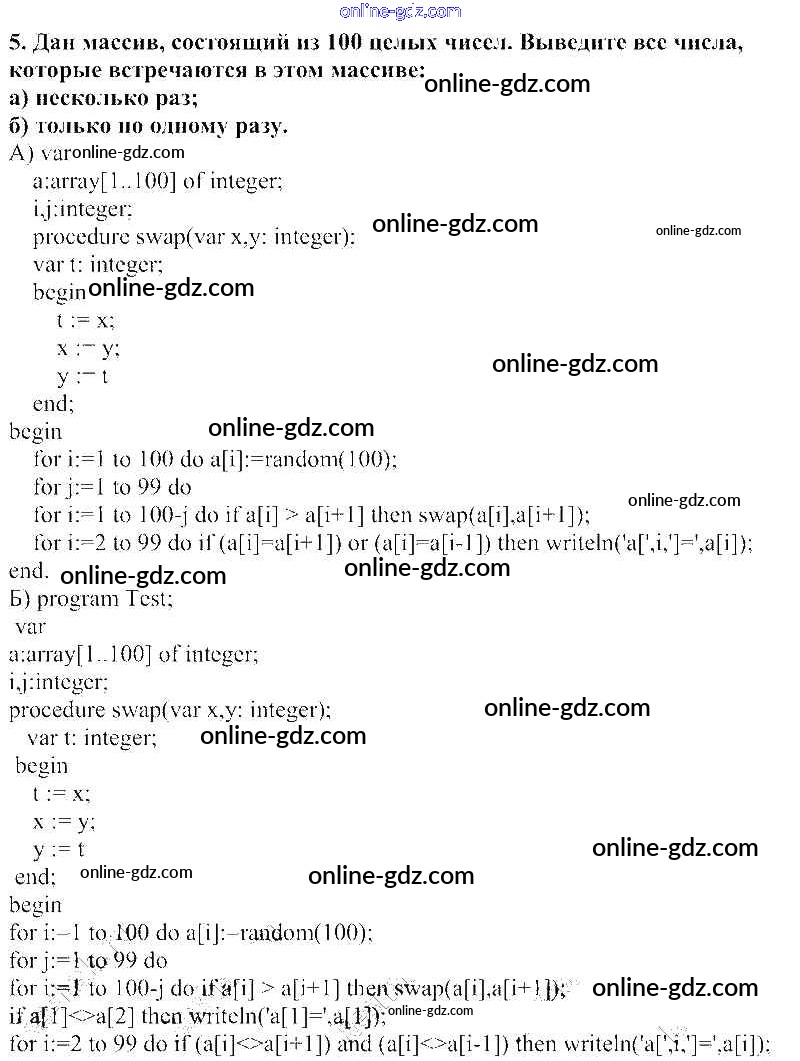 Готовые домашние задания по Информатике за 10 класс Учебник Семакин, Хеннер Базовый уровень 2017 - §26. Типовые задачи обработки массивов 5