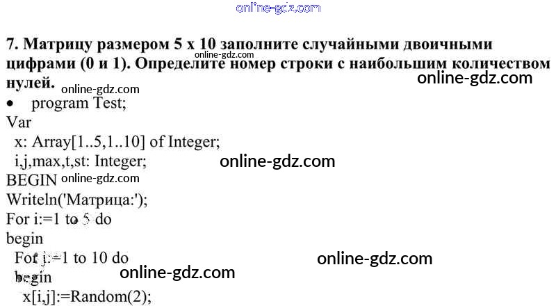 Готовые домашние задания по Информатике за 10 класс Учебник Семакин, Хеннер Базовый уровень 2017 - §26. Типовые задачи обработки массивов 7
