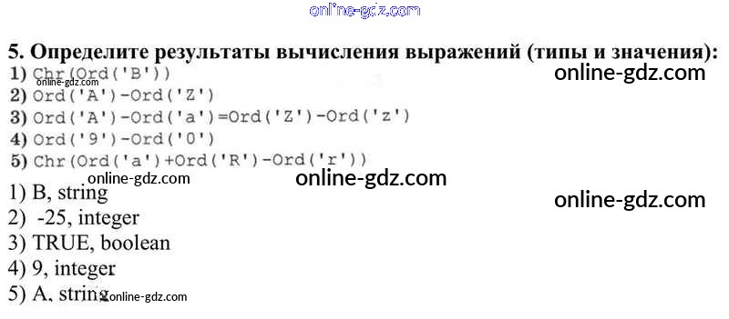 Готовые домашние задания по Информатике за 10 класс Учебник Семакин, Хеннер Базовый уровень 2017 - §27. Символьный тип данных 5