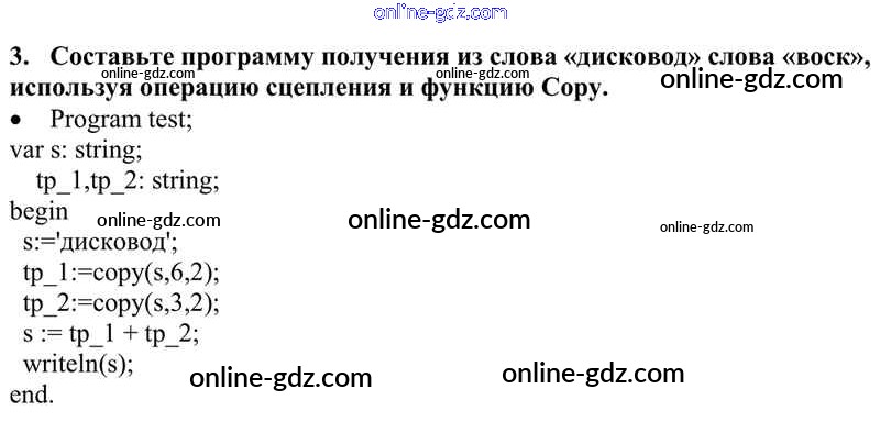 Готовые домашние задания по Информатике за 10 класс Учебник Семакин, Хеннер Базовый уровень 2017 - §28. Строки символов 3