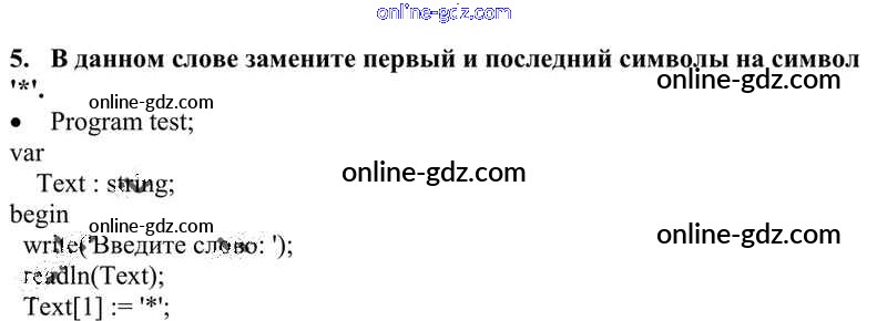 Готовые домашние задания по Информатике за 10 класс Учебник Семакин, Хеннер Базовый уровень 2017 - §28. Строки символов 5