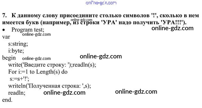 Готовые домашние задания по Информатике за 10 класс Учебник Семакин, Хеннер Базовый уровень 2017 - §28. Строки символов 7
