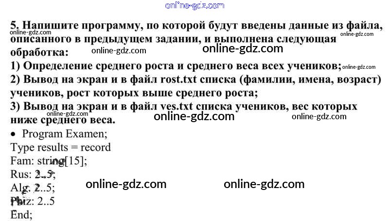 Готовые домашние задания по Информатике за 10 класс Учебник Семакин, Хеннер Базовый уровень 2017 - §29. Комбинированный тип данных 5