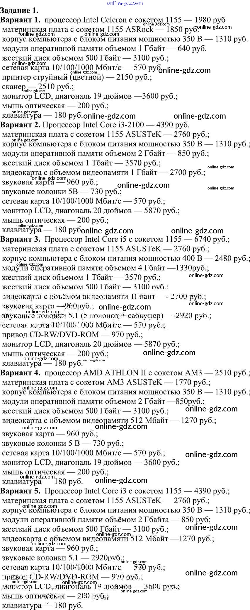Готовые домашние задания по Информатике за 10 класс Учебник Семакин, Хеннер Базовый уровень 2017 - Работа 2.3. Проектное задание. Выбор конфигурации компьютера Практические работы к главе 2 «Информационные процессы» 1