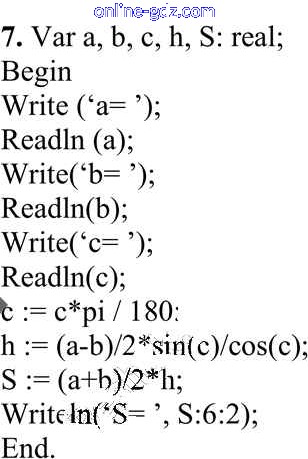 Готовые домашние задания по Информатике за 10 класс Учебник Семакин, Хеннер Базовый уровень 2017 - Работа 3.1. Программирование линейных алгоритмов Практические работы к главе 3 «Программирование обработки информации» 7