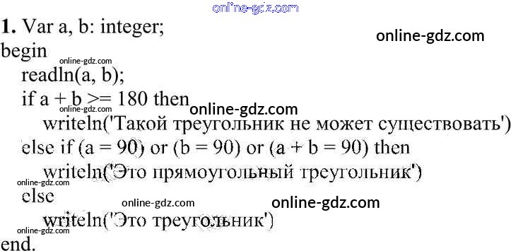 Готовые домашние задания по Информатике за 10 класс Учебник Семакин, Хеннер Базовый уровень 2017 - Задание 1 Работа 3.3. Программирование ветвящихся алгоритмов 1