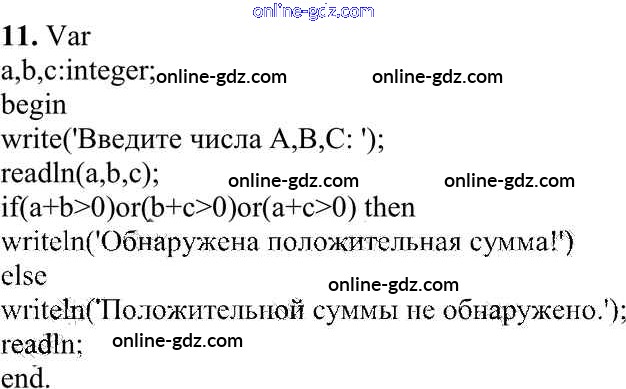 Готовые домашние задания по Информатике за 10 класс Учебник Семакин, Хеннер Базовый уровень 2017 - Задание 1 Работа 3.3. Программирование ветвящихся алгоритмов 11