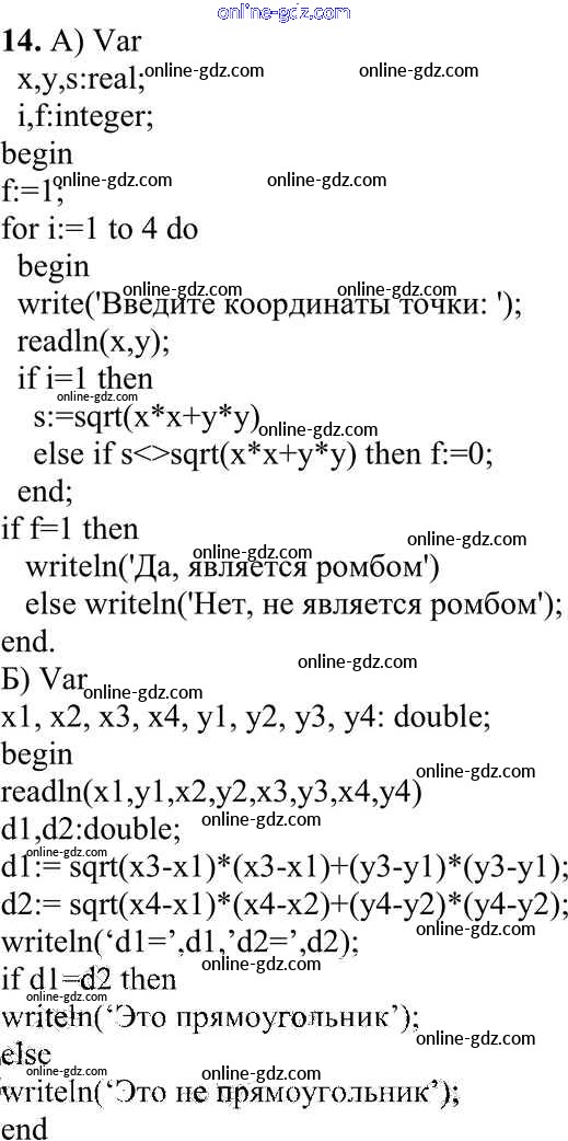 Готовые домашние задания по Информатике за 10 класс Учебник Семакин, Хеннер Базовый уровень 2017 - Задание 1 Работа 3.3. Программирование ветвящихся алгоритмов 14