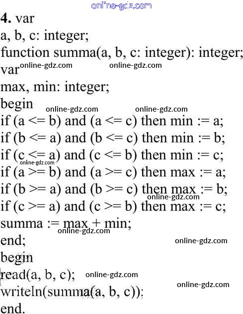 Готовые домашние задания по Информатике за 10 класс Учебник Семакин, Хеннер Базовый уровень 2017 - Задание 1 Работа 3.3. Программирование ветвящихся алгоритмов 4