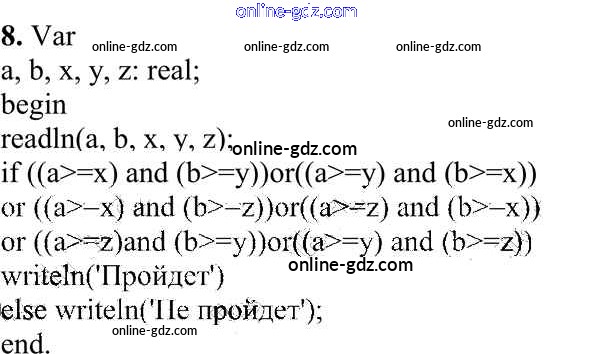 Готовые домашние задания по Информатике за 10 класс Учебник Семакин, Хеннер Базовый уровень 2017 - Задание 1 Работа 3.3. Программирование ветвящихся алгоритмов 8