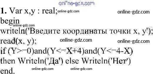 Готовые домашние задания по Информатике за 10 класс Учебник Семакин, Хеннер Базовый уровень 2017 - Задание 2 Работа 3.3. Программирование ветвящихся алгоритмов 1