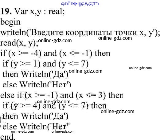 Готовые домашние задания по Информатике за 10 класс Учебник Семакин, Хеннер Базовый уровень 2017 - Задание 2 Работа 3.3. Программирование ветвящихся алгоритмов 19