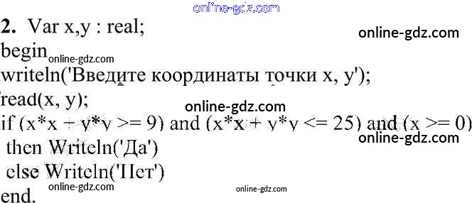 Готовые домашние задания по Информатике за 10 класс Учебник Семакин, Хеннер Базовый уровень 2017 - Задание 2 Работа 3.3. Программирование ветвящихся алгоритмов 2