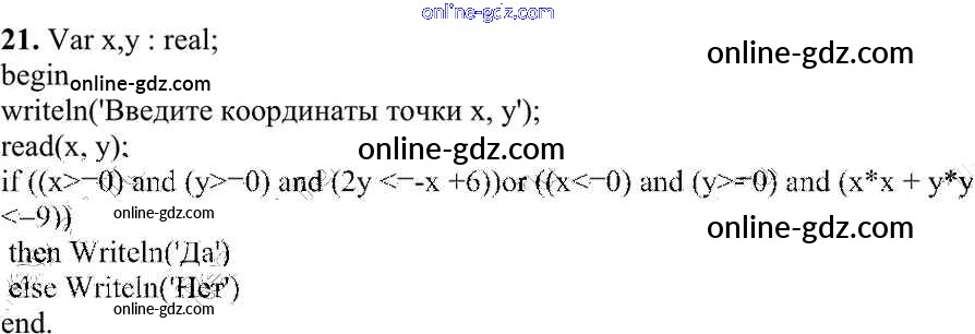 Готовые домашние задания по Информатике за 10 класс Учебник Семакин, Хеннер Базовый уровень 2017 - Задание 2 Работа 3.3. Программирование ветвящихся алгоритмов 21