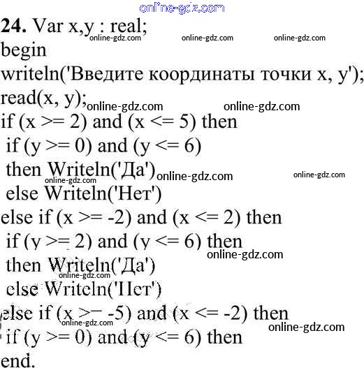 Готовые домашние задания по Информатике за 10 класс Учебник Семакин, Хеннер Базовый уровень 2017 - Задание 2 Работа 3.3. Программирование ветвящихся алгоритмов 24
