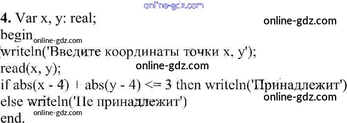 Готовые домашние задания по Информатике за 10 класс Учебник Семакин, Хеннер Базовый уровень 2017 - Задание 2 Работа 3.3. Программирование ветвящихся алгоритмов 4