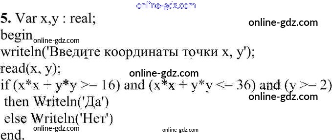 Готовые домашние задания по Информатике за 10 класс Учебник Семакин, Хеннер Базовый уровень 2017 - Задание 2 Работа 3.3. Программирование ветвящихся алгоритмов 5