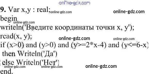 Готовые домашние задания по Информатике за 10 класс Учебник Семакин, Хеннер Базовый уровень 2017 - Задание 2 Работа 3.3. Программирование ветвящихся алгоритмов 9