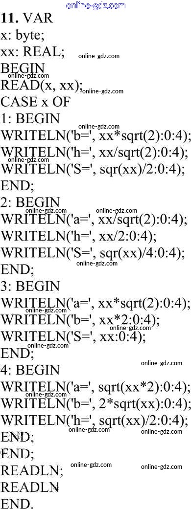 Готовые домашние задания по Информатике за 10 класс Учебник Семакин, Хеннер Базовый уровень 2017 - Задание 3 Работа 3.3. Программирование ветвящихся алгоритмов 11