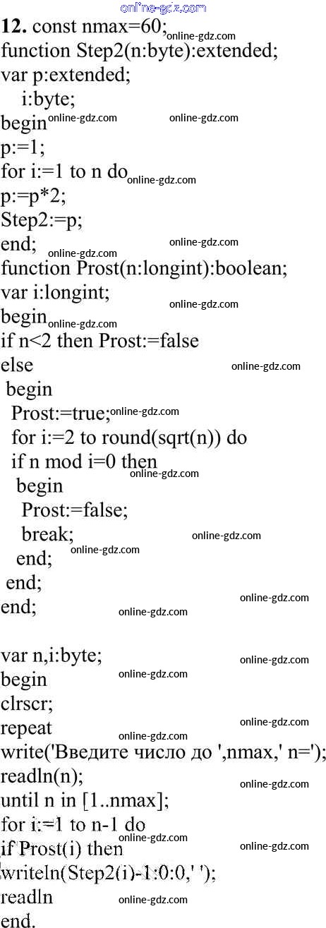 Готовые домашние задания по Информатике за 10 класс Учебник Семакин, Хеннер Базовый уровень 2017 - Задание 2 Работа 3.5. Программирование с использованием подпрограмм 12