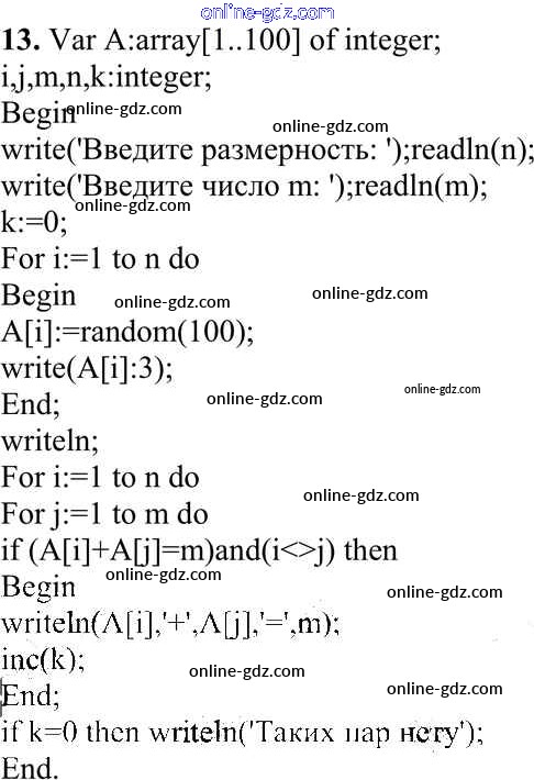 Готовые домашние задания по Информатике за 10 класс Учебник Семакин, Хеннер Базовый уровень 2017 - Работа 3.6. Программирование обработки одномерных массивов Практические работы к главе 3 «Программирование обработки информации» 13