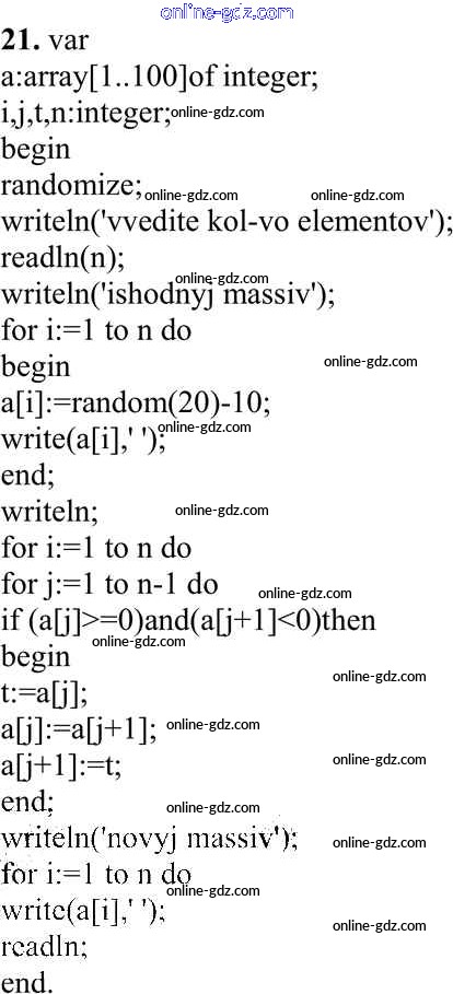 Готовые домашние задания по Информатике за 10 класс Учебник Семакин, Хеннер Базовый уровень 2017 - Работа 3.6. Программирование обработки одномерных массивов Практические работы к главе 3 «Программирование обработки информации» 21