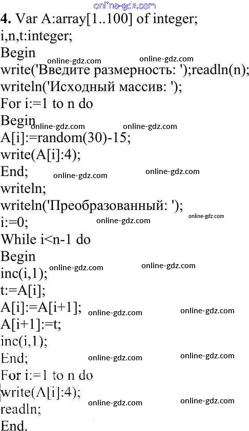 Готовые домашние задания по Информатике за 10 класс Учебник Семакин, Хеннер Базовый уровень 2017 - Работа 3.6. Программирование обработки одномерных массивов Практические работы к главе 3 «Программирование обработки информации» 4