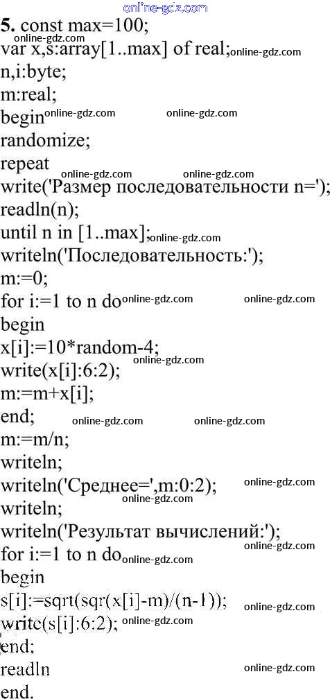 Готовые домашние задания по Информатике за 10 класс Учебник Семакин, Хеннер Базовый уровень 2017 - Работа 3.6. Программирование обработки одномерных массивов Практические работы к главе 3 «Программирование обработки информации» 5