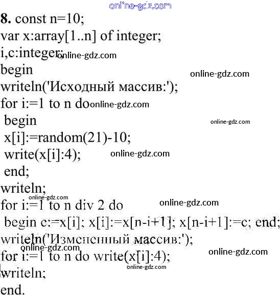 Готовые домашние задания по Информатике за 10 класс Учебник Семакин, Хеннер Базовый уровень 2017 - Работа 3.6. Программирование обработки одномерных массивов Практические работы к главе 3 «Программирование обработки информации» 8