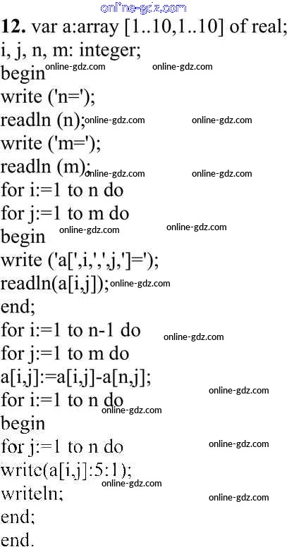 Готовые домашние задания по Информатике за 10 класс Учебник Семакин, Хеннер Базовый уровень 2017 - Работа 3.7. Программирование обработки двумерных массивов Практические работы к главе 3 «Программирование обработки информации» 12