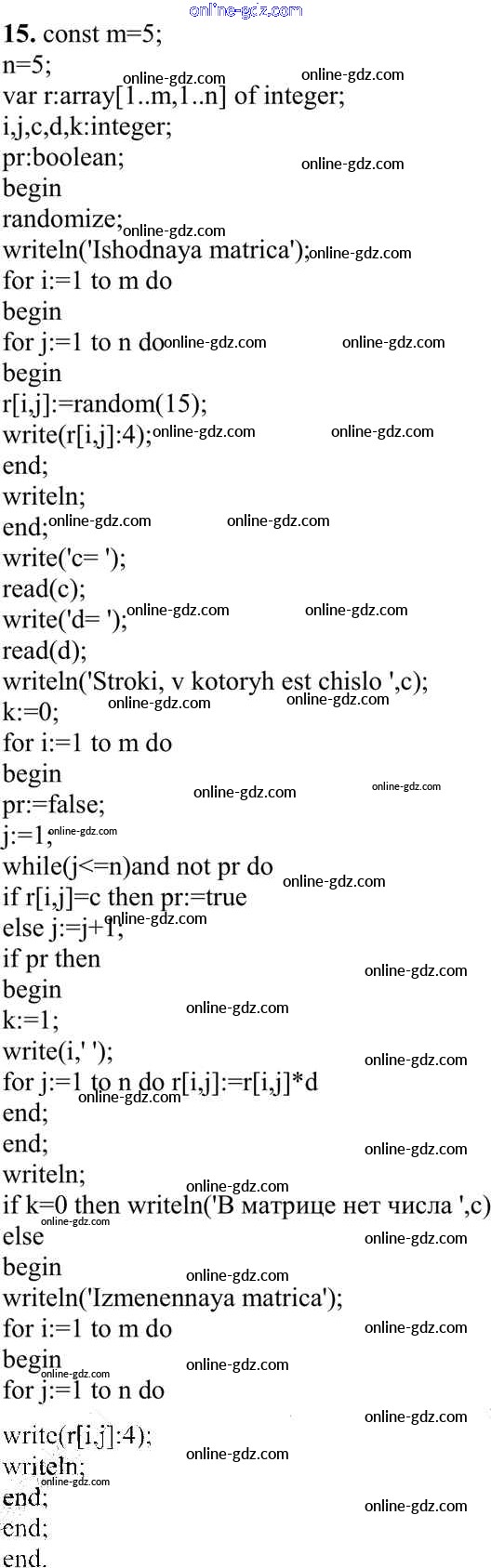 Готовые домашние задания по Информатике за 10 класс Учебник Семакин, Хеннер Базовый уровень 2017 - Работа 3.7. Программирование обработки двумерных массивов Практические работы к главе 3 «Программирование обработки информации» 15