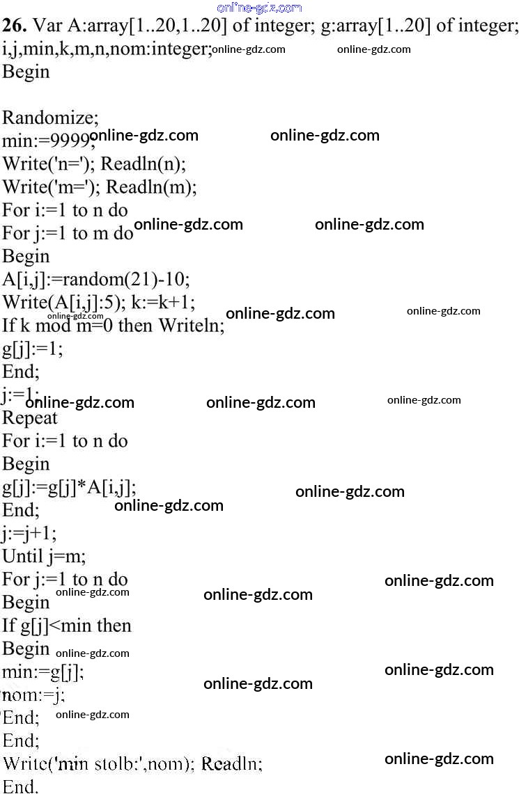 Готовые домашние задания по Информатике за 10 класс Учебник Семакин, Хеннер Базовый уровень 2017 - Работа 3.7. Программирование обработки двумерных массивов Практические работы к главе 3 «Программирование обработки информации» 26