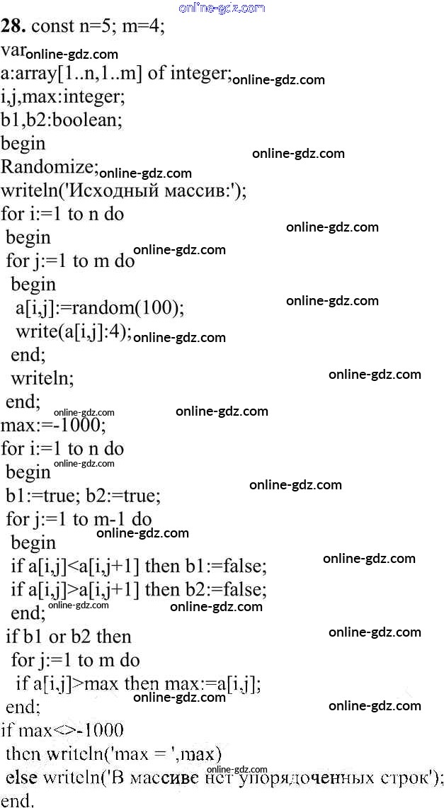 Готовые домашние задания по Информатике за 10 класс Учебник Семакин, Хеннер Базовый уровень 2017 - Работа 3.7. Программирование обработки двумерных массивов Практические работы к главе 3 «Программирование обработки информации» 28