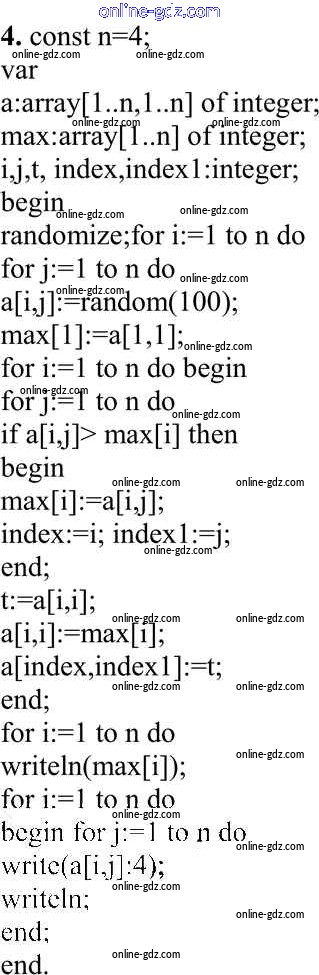 Готовые домашние задания по Информатике за 10 класс Учебник Семакин, Хеннер Базовый уровень 2017 - Работа 3.7. Программирование обработки двумерных массивов Практические работы к главе 3 «Программирование обработки информации» 4