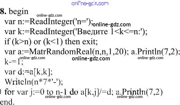 Готовые домашние задания по Информатике за 10 класс Учебник Семакин, Хеннер Базовый уровень 2017 - Работа 3.7. Программирование обработки двумерных массивов Практические работы к главе 3 «Программирование обработки информации» 8