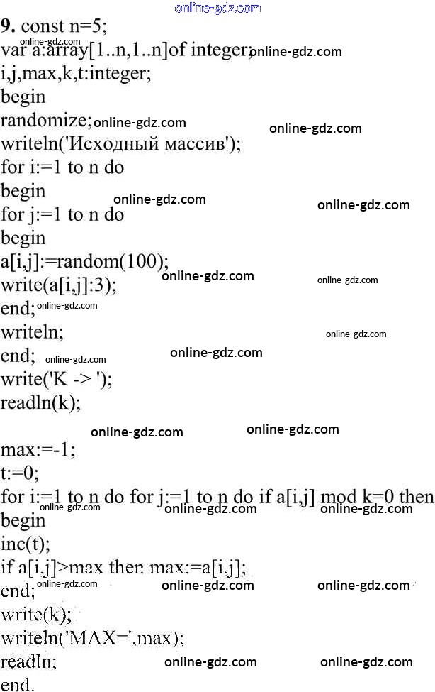 Готовые домашние задания по Информатике за 10 класс Учебник Семакин, Хеннер Базовый уровень 2017 - Работа 3.7. Программирование обработки двумерных массивов Практические работы к главе 3 «Программирование обработки информации» 9