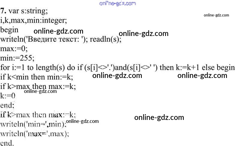 Готовые домашние задания по Информатике за 10 класс Учебник Семакин, Хеннер Базовый уровень 2017 - Работа 3.8. Программирование обработки строк символов Практические работы к главе 3 «Программирование обработки информации» 7
