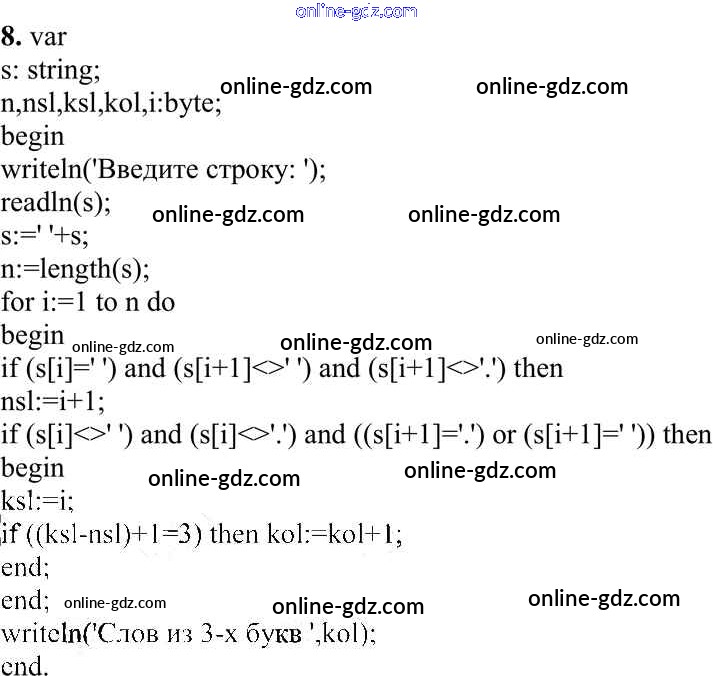 Готовые домашние задания по Информатике за 10 класс Учебник Семакин, Хеннер Базовый уровень 2017 - Работа 3.8. Программирование обработки строк символов Практические работы к главе 3 «Программирование обработки информации» 8